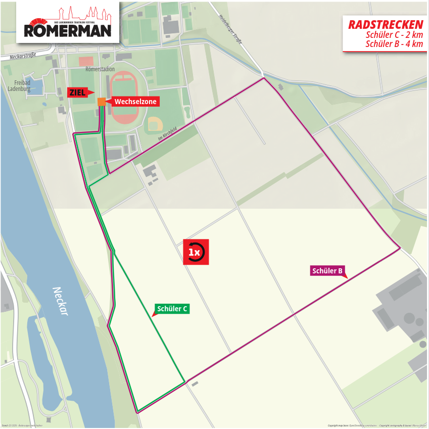 Das Laufen findet im Römerstadion statt: Schüler C eine Stadionrunde, Schüler B eine Runde + zusätzliche Laufstrecke bis zum Wendepunkt.